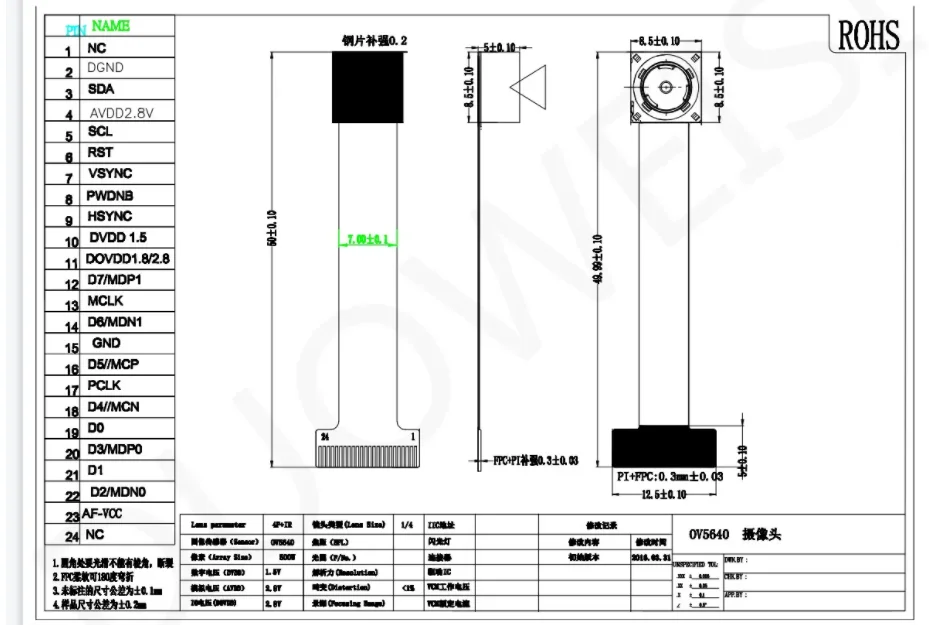 Custom 5MP OV5640 FF camera module HD 24PIN line length 50MM