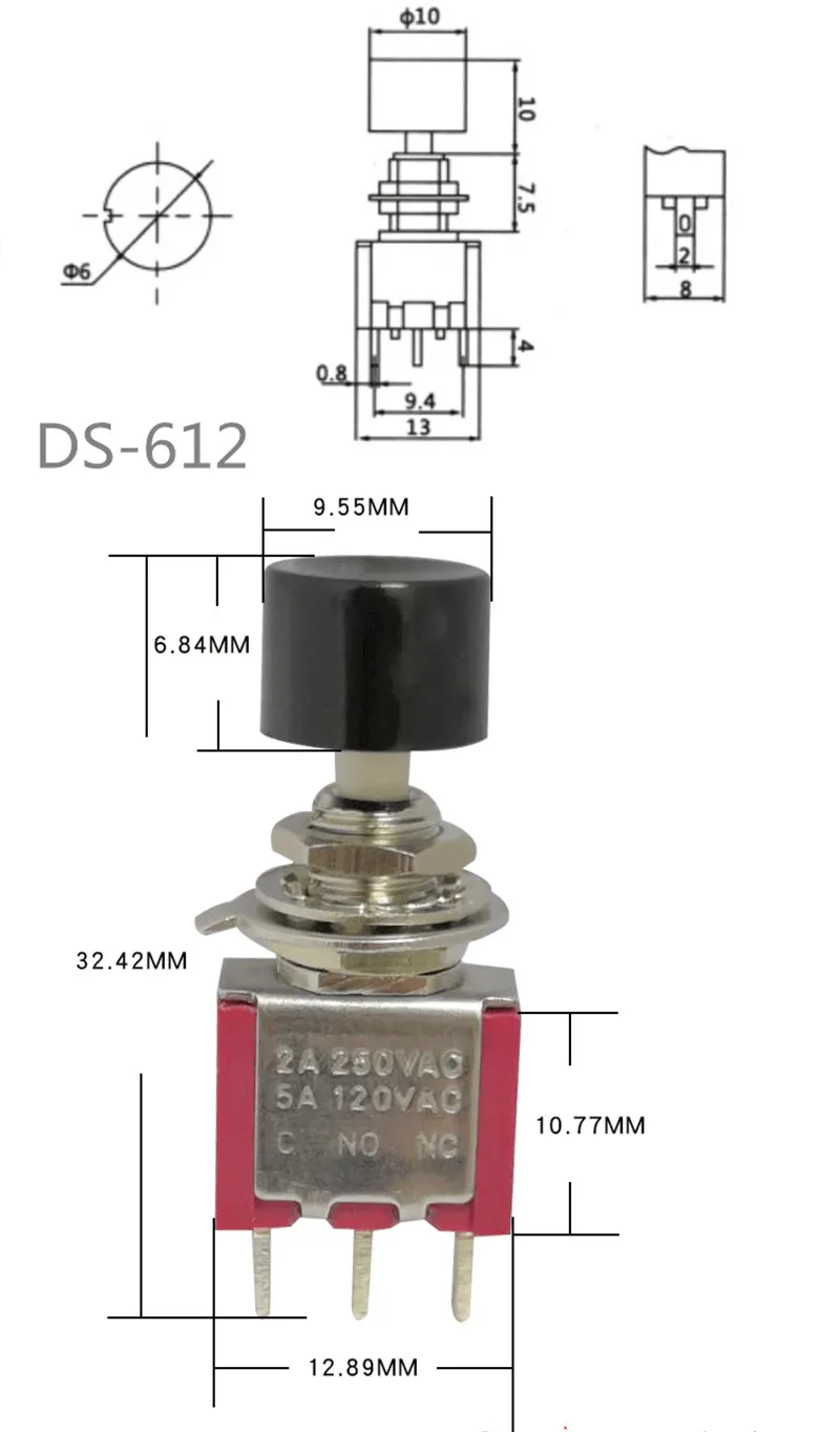 Custom 5P PS-102 DS-612 3Pin 6mm Mini Momentary Automatic Return Push Button Switch ON-(ON) 2A 250VAC/5A 120VAC Toggle Switches Manufacturer