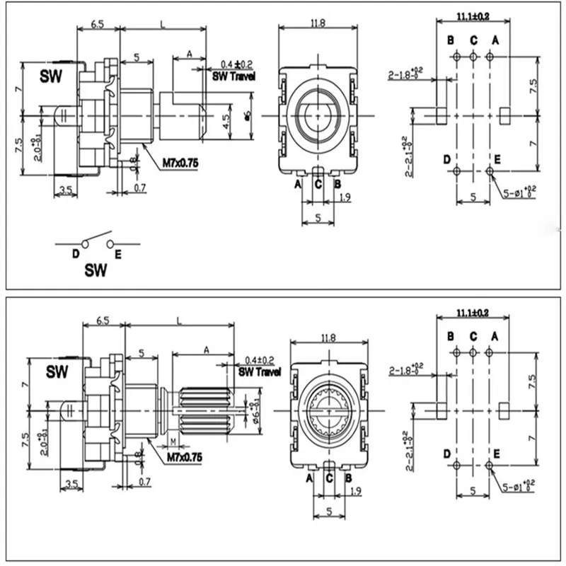 5PCS/Lot Ec11 Rotary Encoder Switch 15/20mm Plum Blossom Handle Half Shaft 20 Bit Pulse Digital Signal Potentiometer