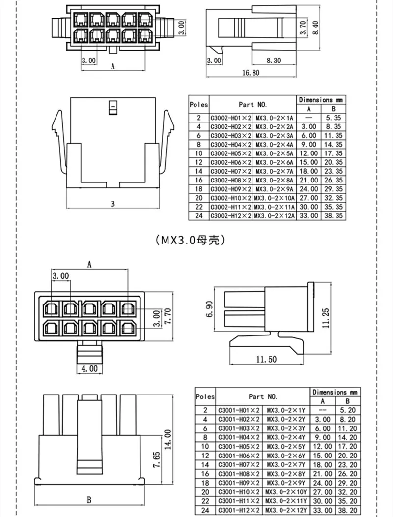 Custom 5PCS Molex 3.0MM Cables 20AWG Small 5557 5559 Male Female Air Docking Electronic Cable, MX3.0 43025 Terminal Line Manufacturer