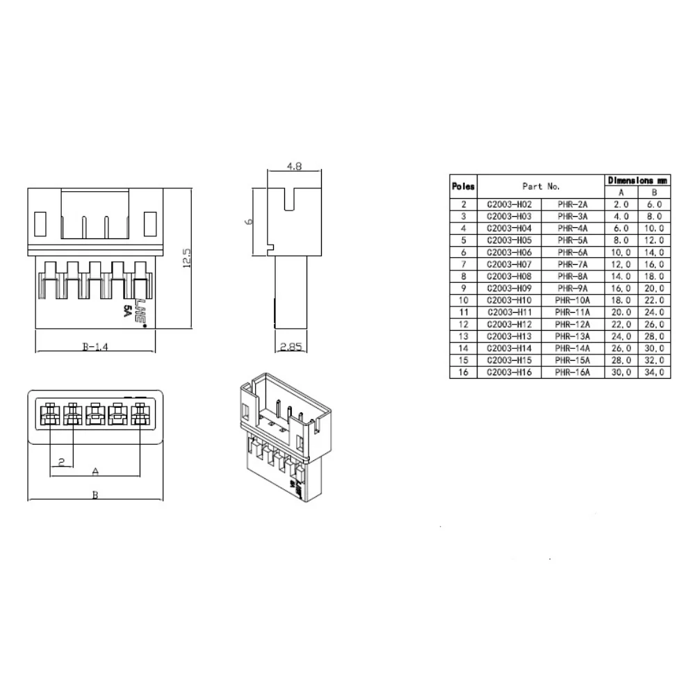 5pcs PH2.0 Extension Line 2/3/4/5/6p PH 2.0mm Male To Female Connector With Cable 10/20/30cm 26AWG