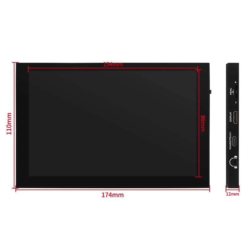 7 inchHDMI-compatitable portable display, with leather shell bracket, which can be bracket too. It is power by USB type-C port, need not extra power adapter. When use for Windows PC or Raspberry Pi/Orange Pi/Jetson Nano mini PC , it have capacitive touch function.