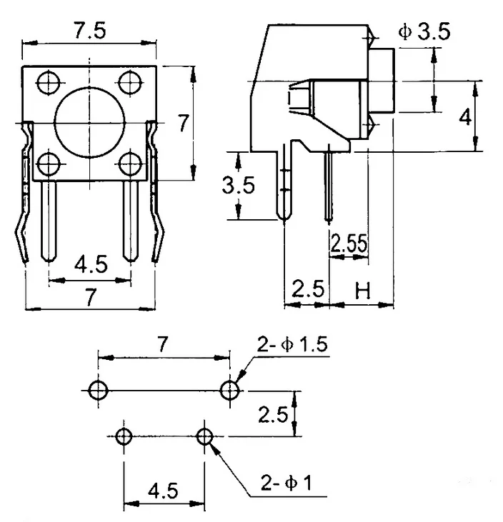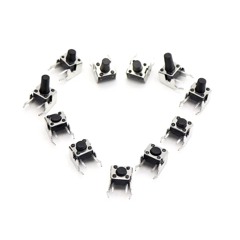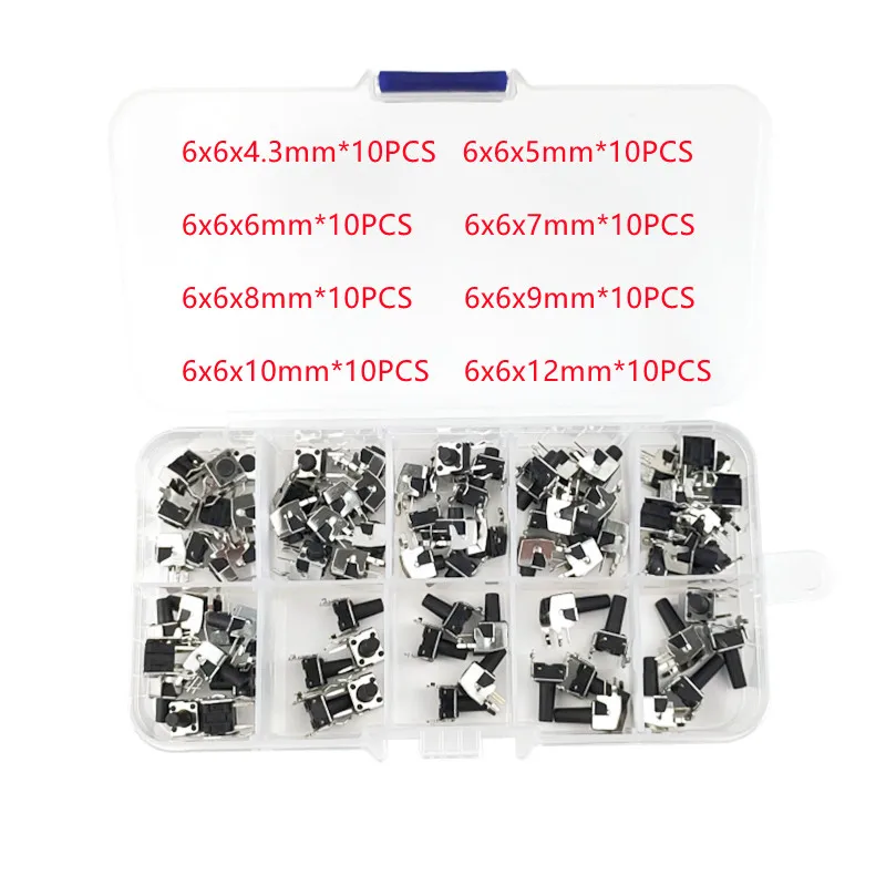 Custom 80PCS/Lot PCB Momentary Tactile Tact Push Button Switch Right Angle With stent 6*6*4.3/5/6/7/8/9/10/12mm Whit Box Manufacturer