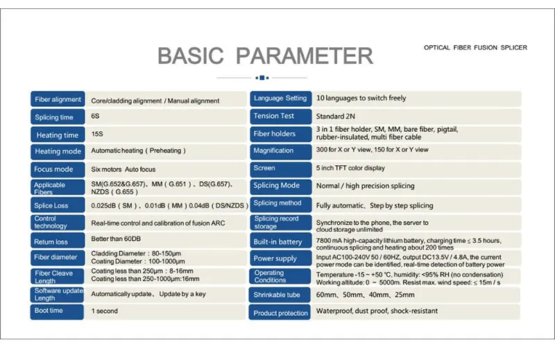 splicer. It is fully qualified with trunk construction of medium and short distance, FTTH project, security monitoring and other