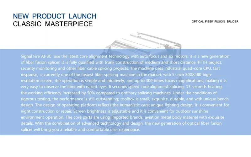 Signal Fire Al-8C use the latest core alignment technology with auto focus and six motors, it is a new generatior of fiber fusion
