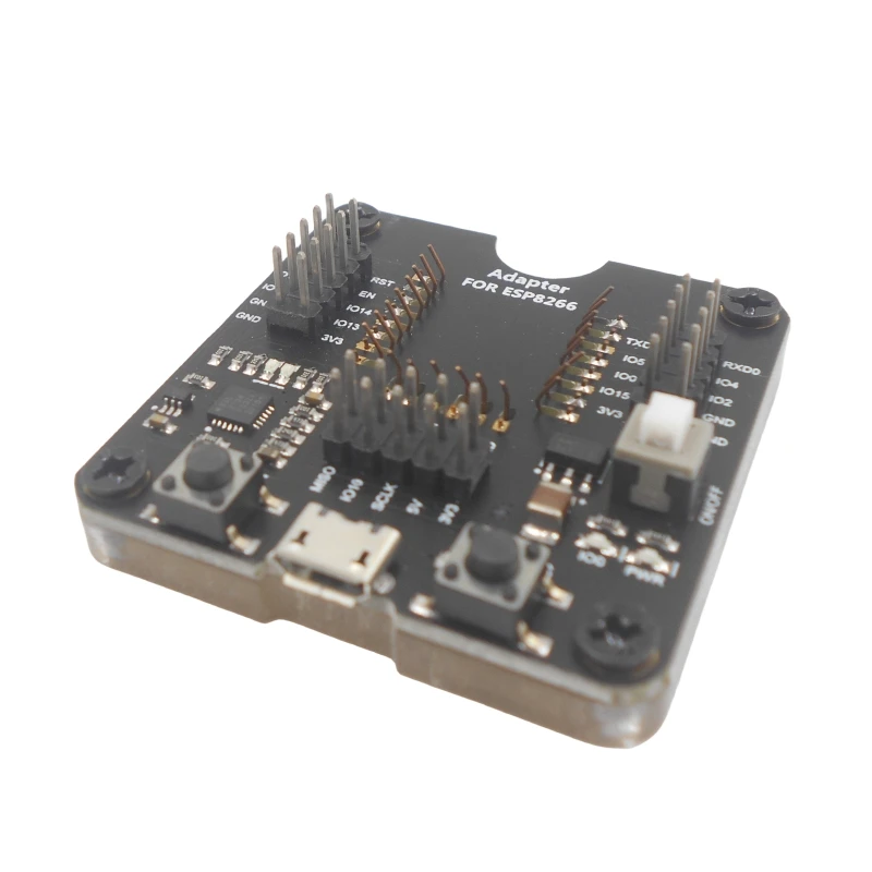 This fixture does not include the ESP8266 module, which is suitable for fixed burning testing of modules such as AI ESP-1 2S/2F/12E/07S/07. All 10 ports have been brought out and can be used as the smallest system development board or as a fixture board for small-scale burning. The firmware one click download function is supported, and the burning mode indicator light (blue light) and serial communication indicator light (green light) have been added.