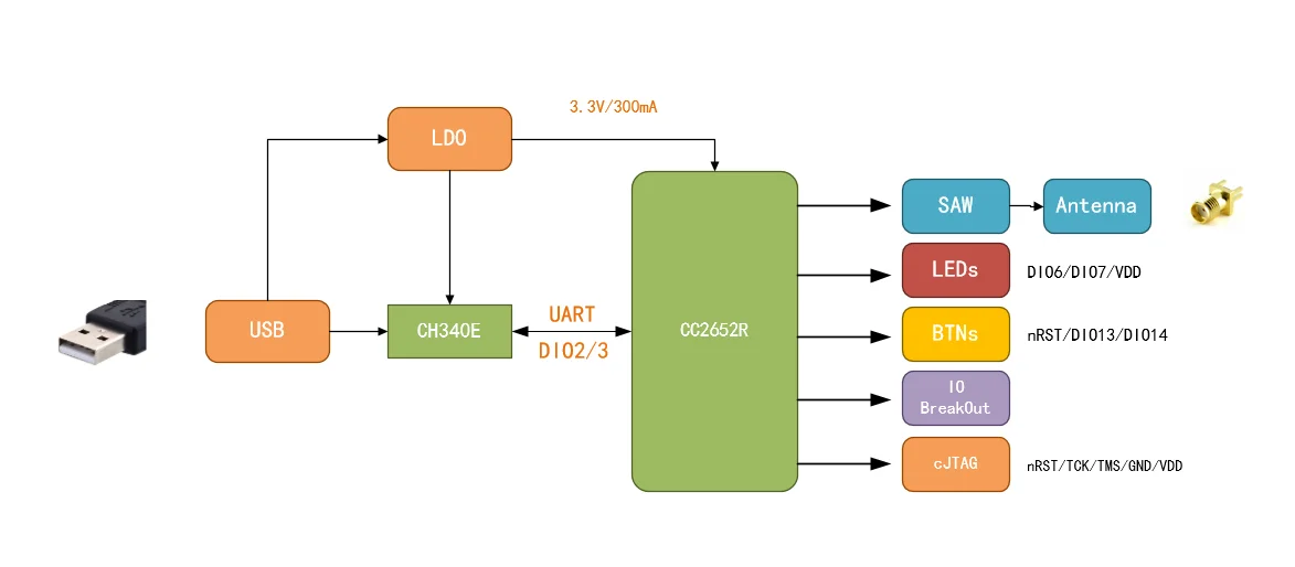 1. 2.4GHz multiprotocol RF development board(OpenThread,Zigbee,BLE,IEEE802.15.4,6LoWPAN and proprietary) based on TI CC2652R1FRGZR chip