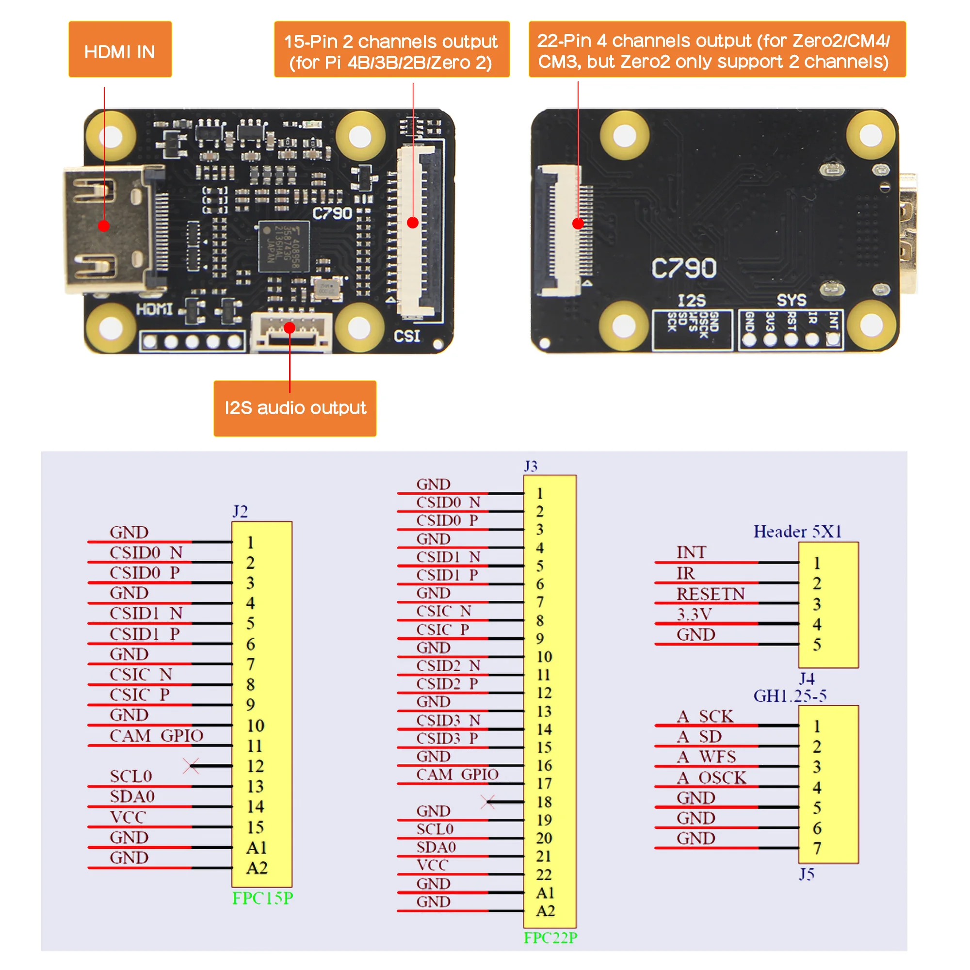 Custom CSI 2 Adapter C790 | Support Video & Audio | Up to 1080p60fps | for Pi 5 / 4 B / 3 B+ / 3B / CM4 / Zero KVM