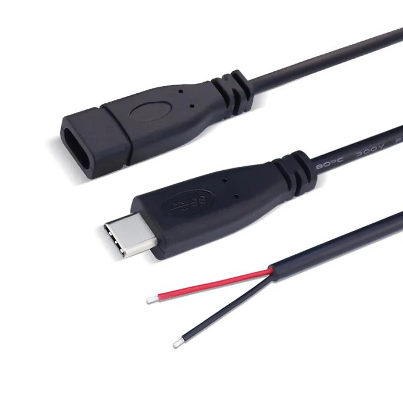 Custom 1pcs 25cm 2pin 4pin Wire USB 2.0 Type C Male Female Plug Extension Welding Type USB-C DIY Repair Cable Charger Connector Manufacturer