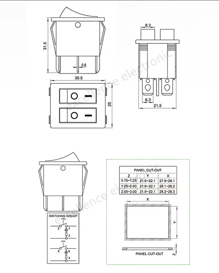 KCD6 31x25mm Double Light Rocker Switch 4Pin 6Pin 2/3 Position 16A/250V 20A/125V ON-OFF/ON-OFF-ON Boat Power Electric Car Switch