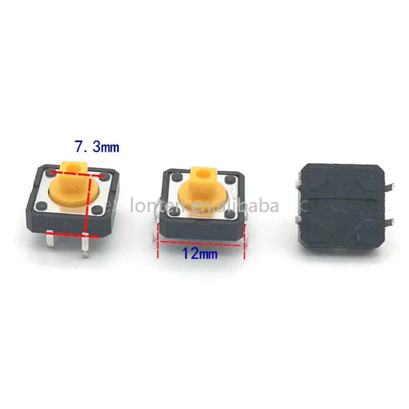 Custom Custom 20PCS 12x12x7.3mm Tactile Switches Yellow Square Push Button Tact Switch 12*12*7.3 mm Micro Switches Manufacturer