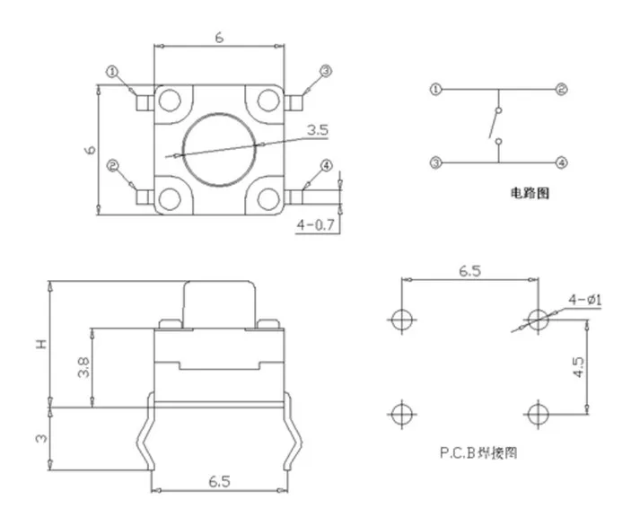 Custom 20pcs Waterproof Tact Switch 6X6 switch 4 Pin 6*6*5MM/6MM/7MM/8MM/9MM/10MM Manufacturer