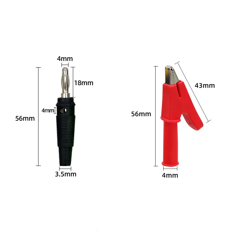The test lead, one side is banana plugs, the other side is crocodile alligator clips, perfect for various devices and uses