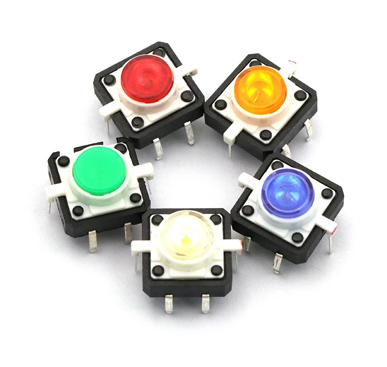Custom Custom 5pcs Illuminated Tact Switch Button switch 12*12 red White blue yellow green LED 3V 4 pin reset 12*12*7.3mm Manufacturer