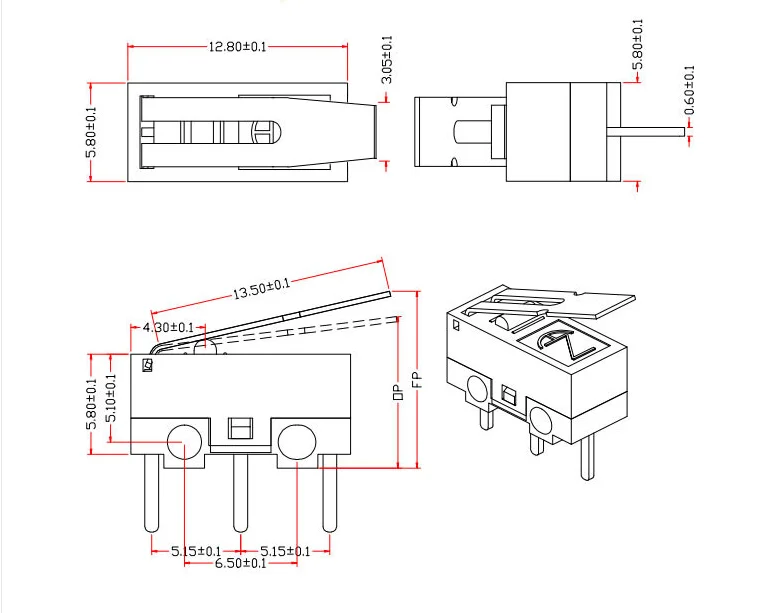 5PCS/Lot Micro Switch Push Button Switch 3 Pin 1A 125V AC Mini Light Touch Switch for Mouse