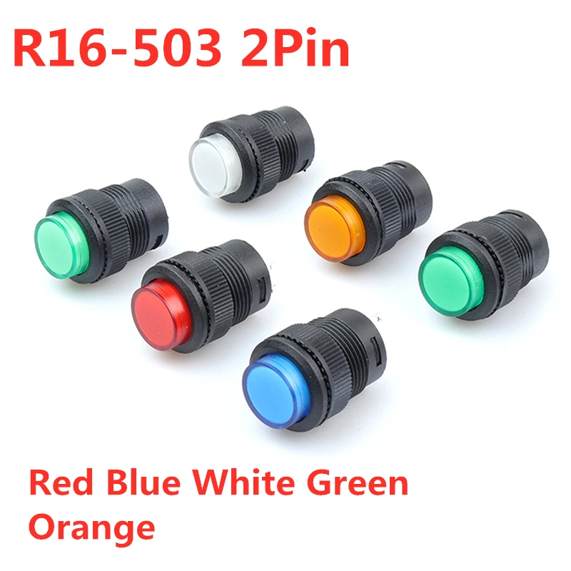 Custom 5Pcs R16-503 Key Button Switch Jog Reset Self-locking Switch Round 2 Pin 16MM without Light Manufacturer