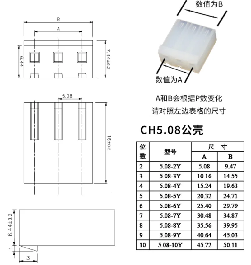 Single Side Connector: One side with CH5.08 Housing Female Connector, the other side with tin-plated 3CM