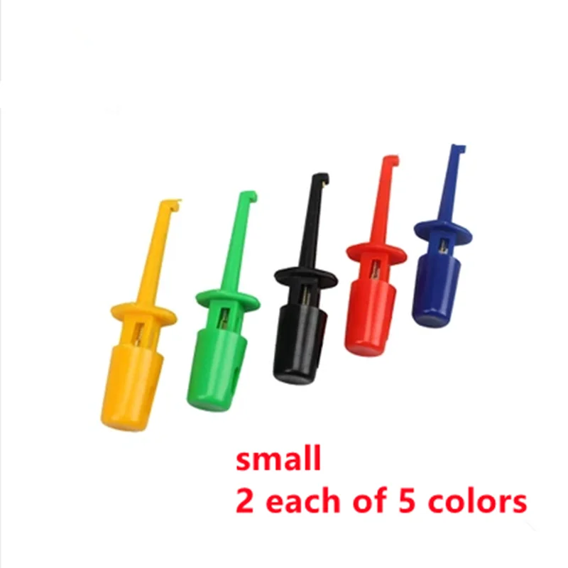 10Pcs Large / Small Test Hook Clip Test Probe for Electronic Testing IC Grabber Round Crocodile Clip Hook Test Clip Color Mix