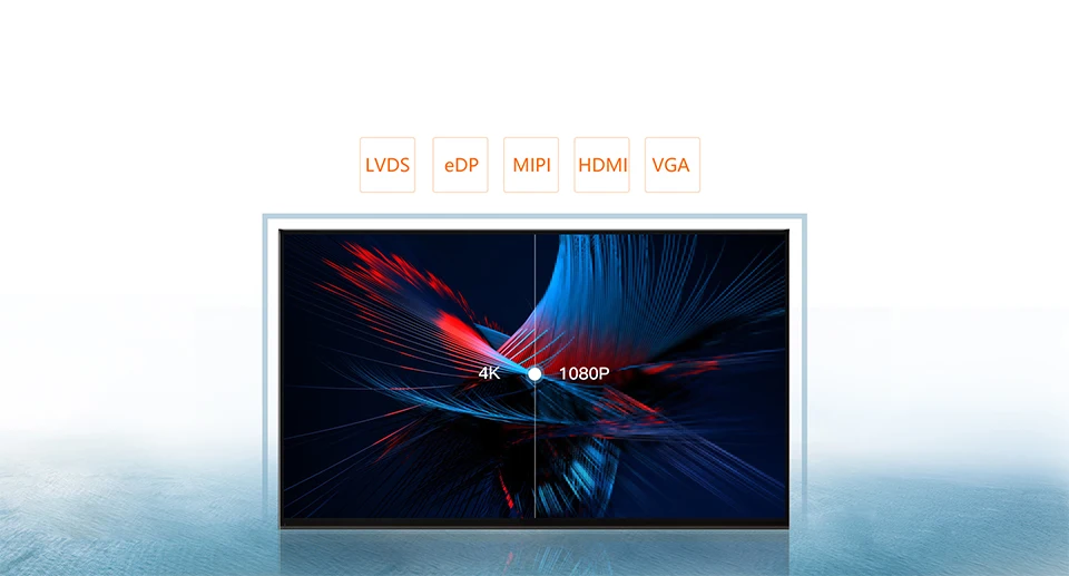 It supports LVDS/EDP/MIPI/HDMI/VGA display interfaces, 4K hardware decoding, dual-screen identical display/dual-screen differential display, and can drive the mainstream 5~100 inch display directly.
