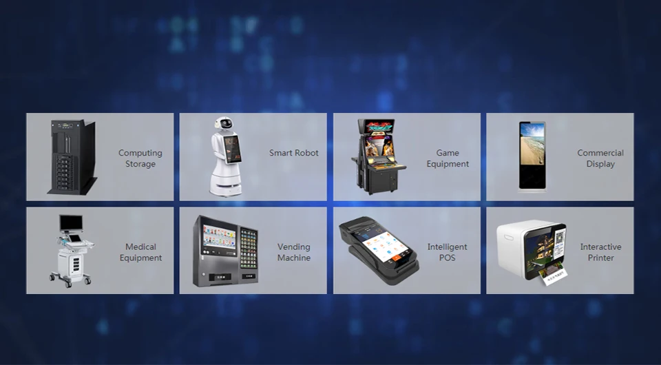 AIO-3288C can be directly applied to a variety of products. Such as Computing Storage, Smart Robot, Game Equipment, Commercial Display, Medical Equipment, Vending Machine, Intelligent POS, Interactive Printer etc.