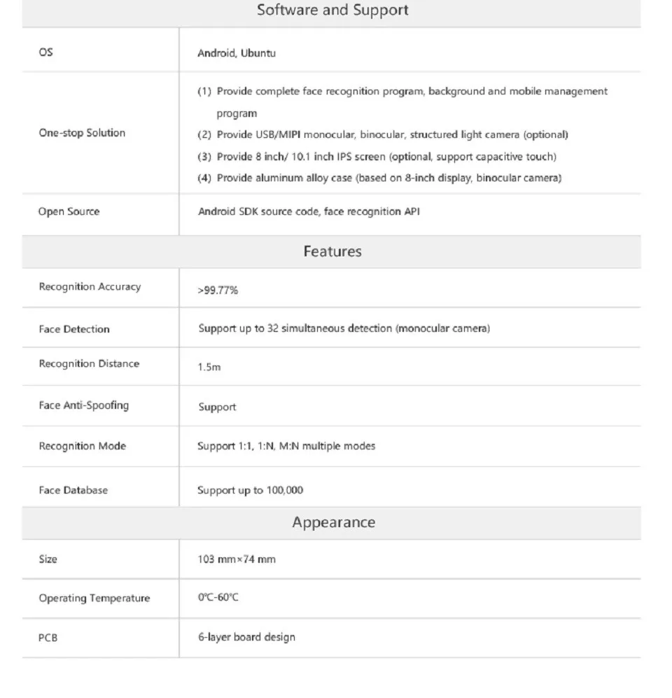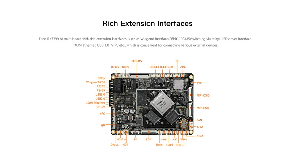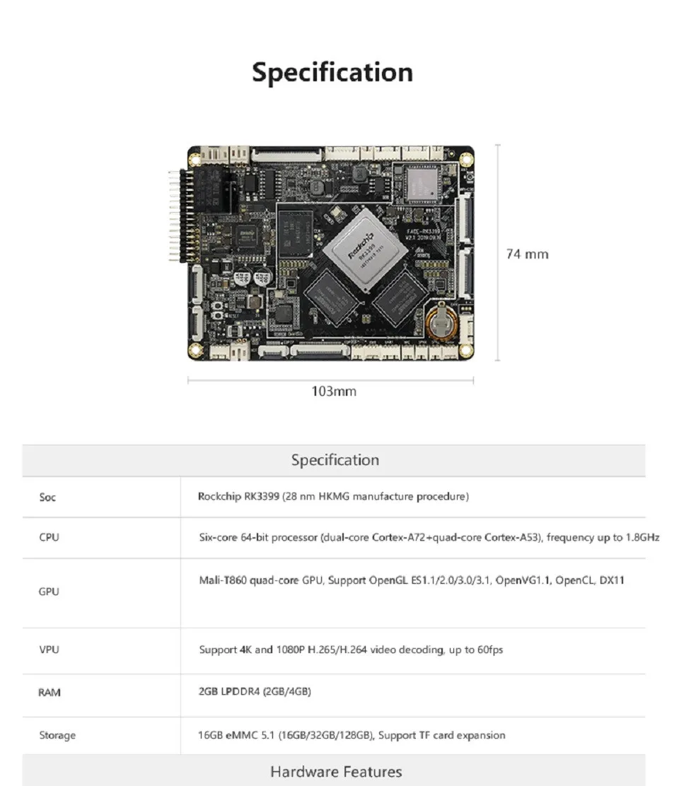 Custom PCBA Firefly Face-RK3399 Face Recognition Rockchip RK3399 2GB LPDDR4 16GB eMMC 5.1 Six-core 64-bit Processor 1.8GHz Manufacturer
