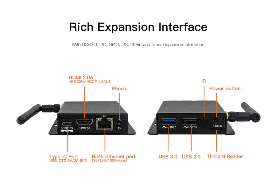 With USB3.0, 12C, GPIO, l2S, 26Pin and other expansion interfaces.