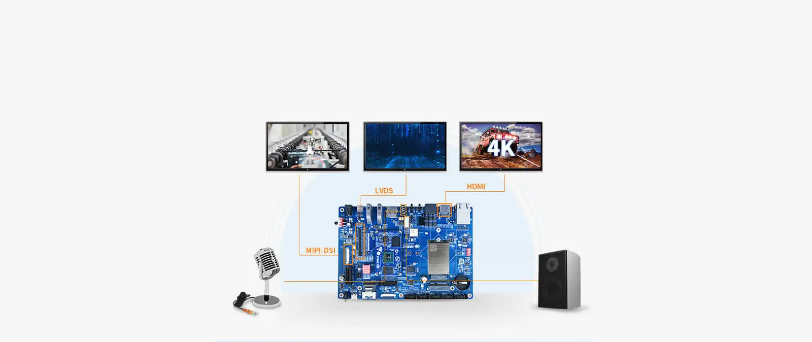 it also has LVDS, MIPI-DSI display interfaces, and can support three display interfaces, three screens with the same display, and three screens with different displays;