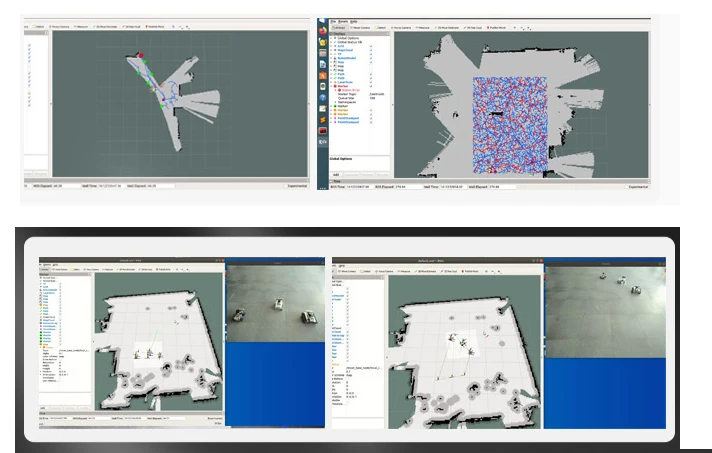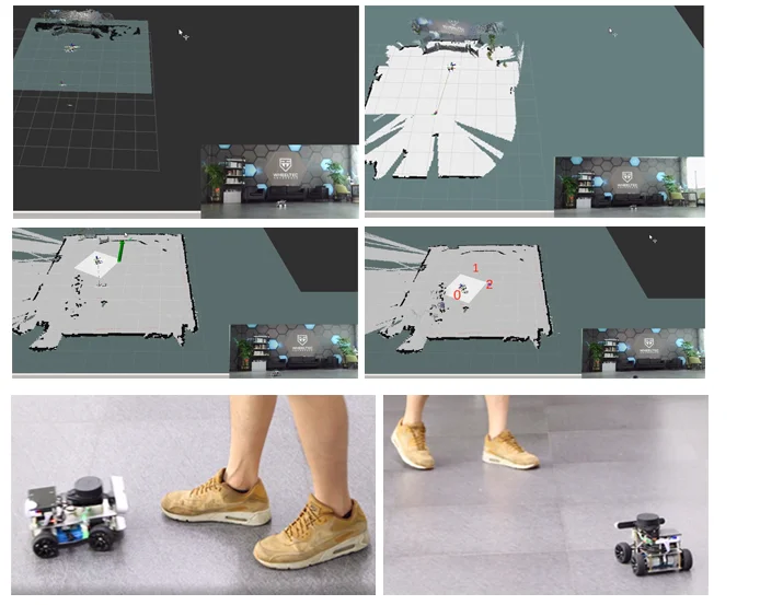 Supports visual SLAM, GMapping, HECTOR, Karto, Google Cartographer and other algorithms for map construction. Support fixed point navigation, multi-point navigation. Lidar following The laser radar can follow any object including people in all directions