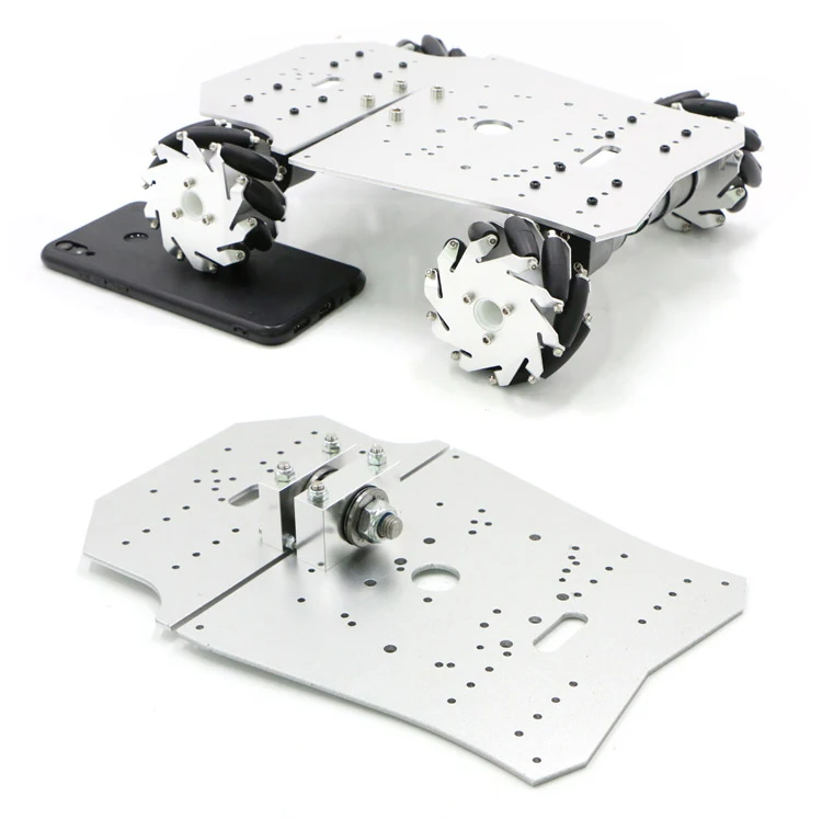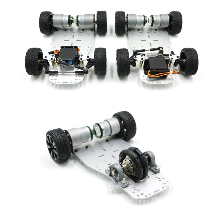 Ackerman/differential version chassis 12V30F MG513 Motor *2 37 Motor bracket*2 Hexagon coupling-6mm*2 Black rubber wheels* 4 Steering horn assembly*2 Steering horn press*2 Ball head pull rod short *1 Ball head pull rod long *1 Steering gear rocker arm*1 Steering disc*1 Steering gear*1 Steering gear multifunctional support*1pcs Aluminum alloy bottom plate of car*1pcs Aluminum alloy top plate of car*1pcs Omnidirectional wheel assembly module*1pcs Standard parts and connectors McNum Wheel/Rider Buggy chassis Replace McNum wheels and flange couplings with 65mm rubber wheels and hexagonal couplings for buggy chassis 12V30F MG513 Motor*4 37 Motor bracket*4 75mm aluminum alloy McNum wheel*4 Metal flange coupling*4 Aluminum alloy plate on top of car*1pcs Aluminum alloy bottom plate of car*1pcs Swing-type suspension mechanism a set of Standard parts and a plurality of connecting parts thereof Omnidirectional wheel version chassis 12V30F MG513 motor *3 37 Motor bracket *3 60mm aluminum alloy McNum wheel *3 Metal flange coupling *3 Aluminum alloy bottom plate of trolley *1PCS Aluminum alloy plate *1PCS on the upper layer of the trolley And a number of standard parts and connectors thereof Tracked car version chassis 12V30F MG513 Motor*2 37 Motor bracket *2 Chassis*1 side plate*2 L-type connector*6 driving wheel connecting rod *8 Pull spring *8 driving wheel module *2 Drive wheel module *10 tracks *2 And a number of standard parts and connectors thereof