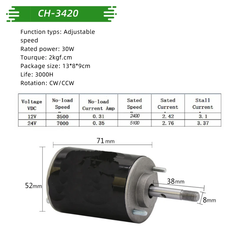 1.Can be applied in cotton candy machine, small cutting bench, grinding machine, medical equipment and other mechanical equipment. 2.It drives up the super smooth, almost no noise. 3.This motor features high speed 3500/7000rpm and large torque. 4.The stator windings of the motor are copper wire, CW/CCW control. 5.This permanent magnet DC motor is for DIY generator. 6.Need for external direct current governor, it can achieve speed adjustment function.