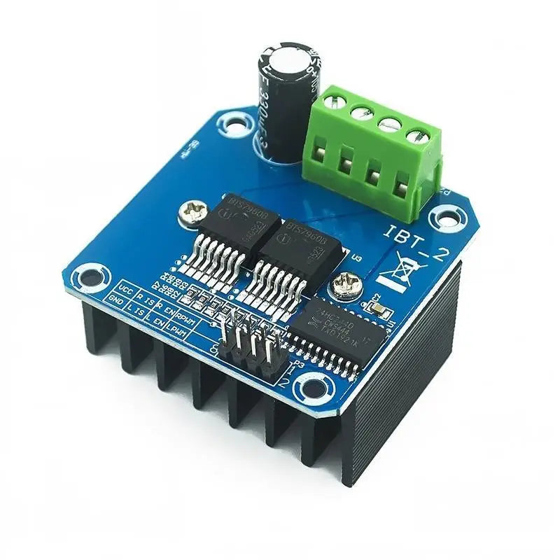 This driver uses chips BTS7960 composed of high-power drive full H-bridge driver module with thermal over-current protection. Double BTS7960 H-bridge driver circuit, with a strong drive and braking, effectively isolating the microcontroller and motor driver! High-current 43A