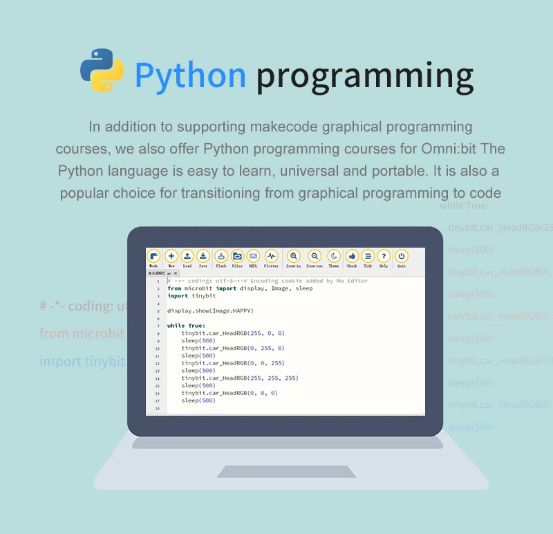 * Gebruik BBC micro:bit MakeCode grafische en Python programmeren, gemakkelijk te gebruiken.