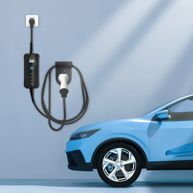 Electric Car Charger Type 2 Schuko Plug Level 2 16A EVSE 220V 3.6kW EV Fast Charging Mobile Wallbox 5m Cable 8A 10A 13A
