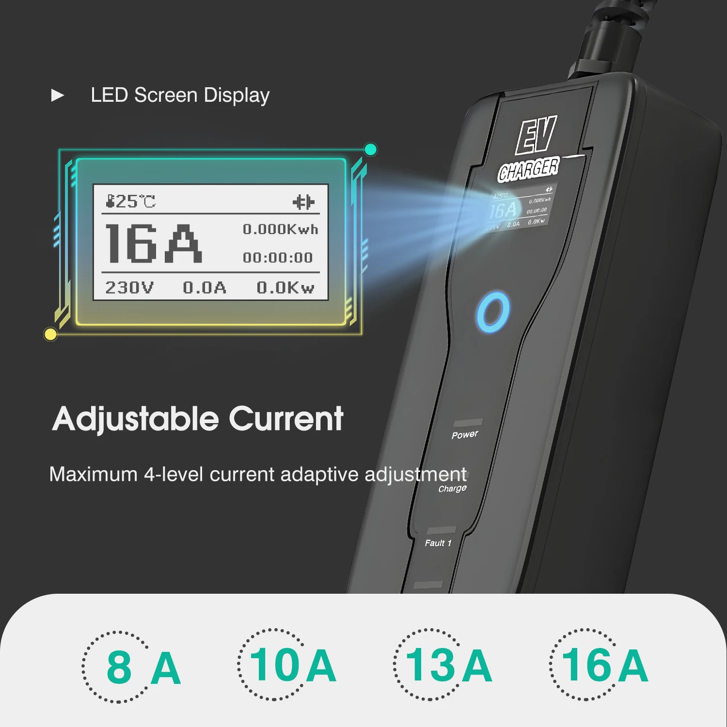 Note: Adjusting the current needs to be done before connecting the electric car.