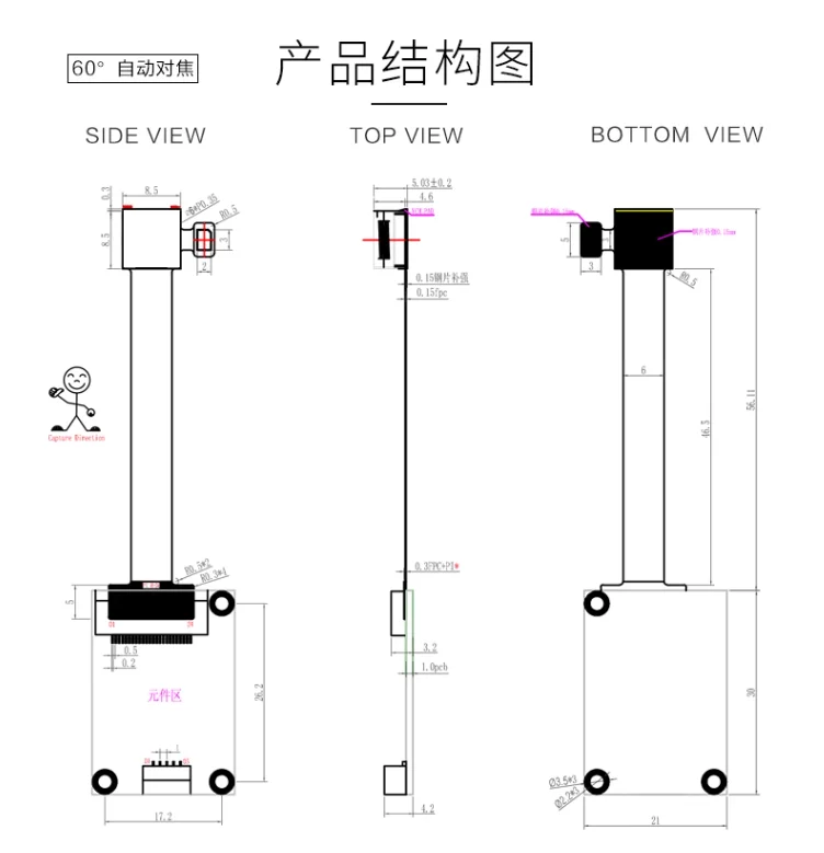 Size: PCB: 30mmx21mm FPC: 60x8.5x5mm