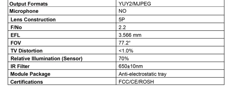 Focus mode: auto focus/fixed focus (the default factory object distance of fixed focus is 60cm, please contact customer service for special requirements)