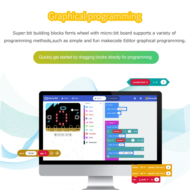 * Uitgerust met een multifunctionele super:bit uitbreidingskaart tailored voor micro:bit, eenvoudige en interessante Grafische en Python programmering.
