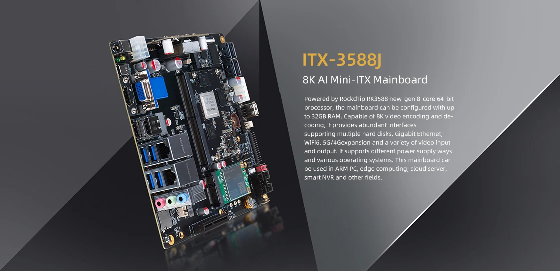 Custom ITX-3588J Rockchip RK3588 Mainboard 8K AI Mini 8-Core 64-Bit Processor MotherBoard WiFi6 5G 6Tops Edge Computing Ultra RK3568 Manufacturer