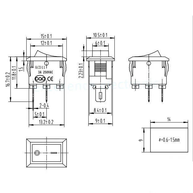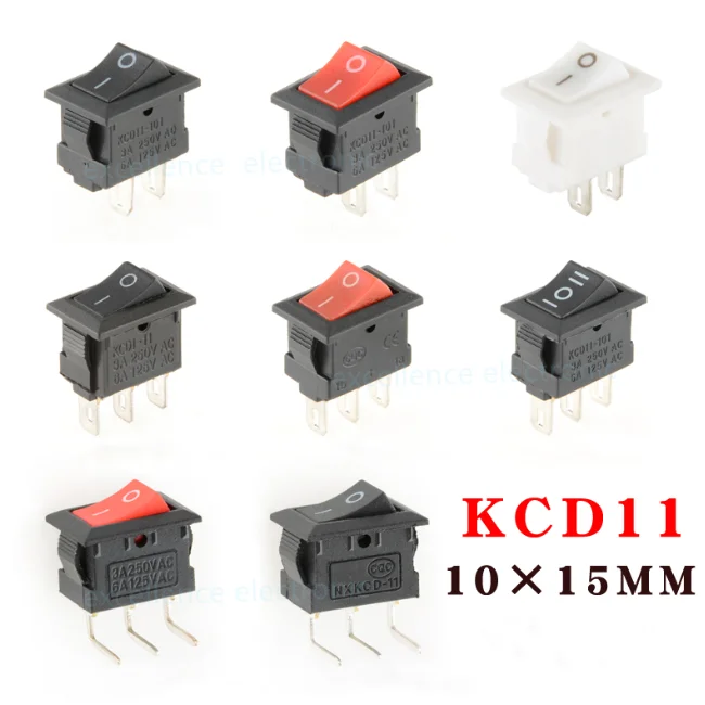 Custom KCD11 2Pin/3Pin 10x15mm Mini Rocker Switch SPST 3A 250V AC Snap-in On/Off Boat Push Button Switch Black Red White Manufacturer