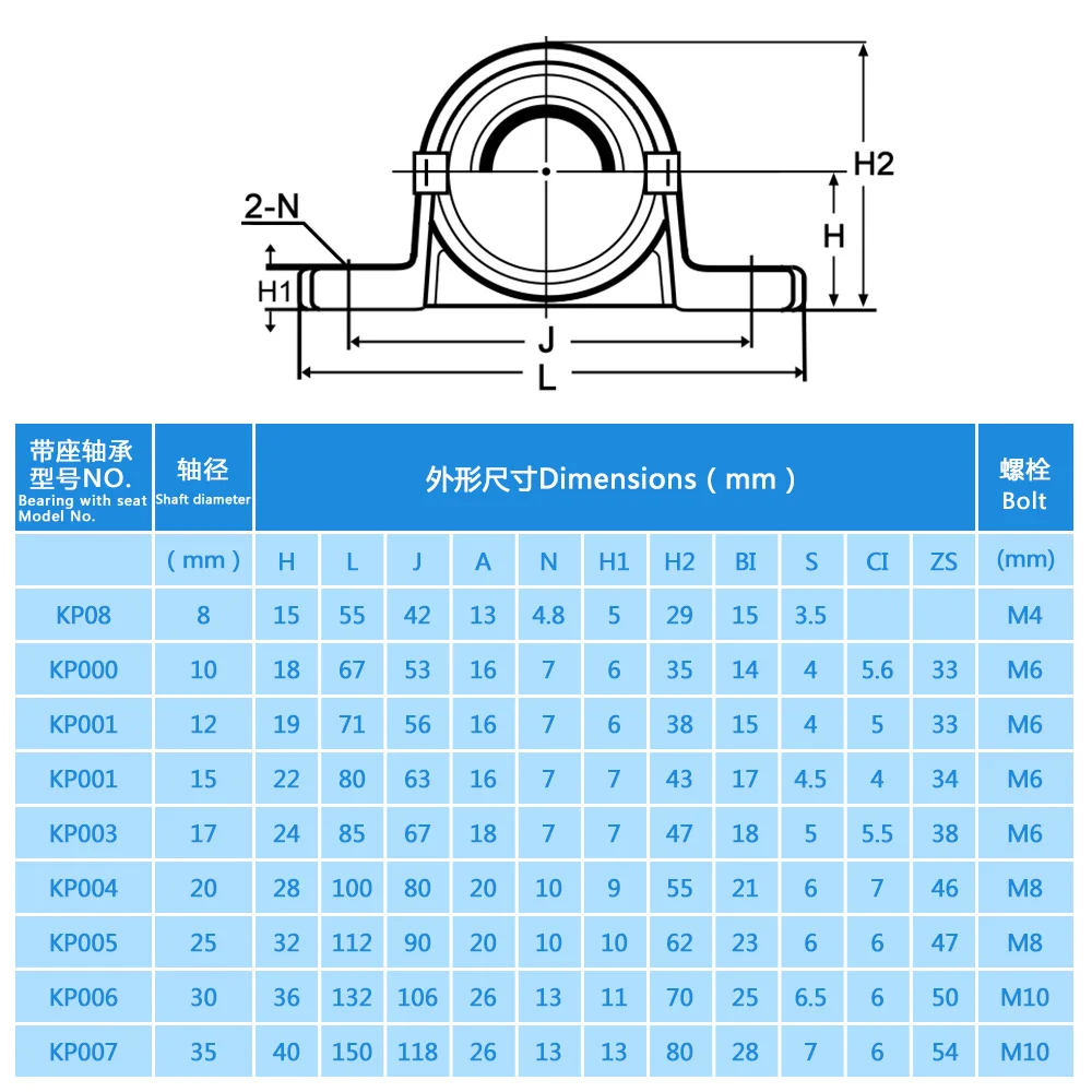 Custom KP08 KFL08 T8 Lead Screw Support Diameter 8mm Zinc Alloy Bore Ball Bearing Pillow Block Mounted For T8 Lead Screw Shaft Collar Manufacturer