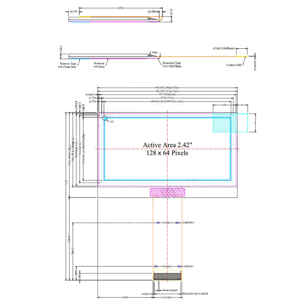 Connection method: 0.5mm pitch, plug-in FPC
