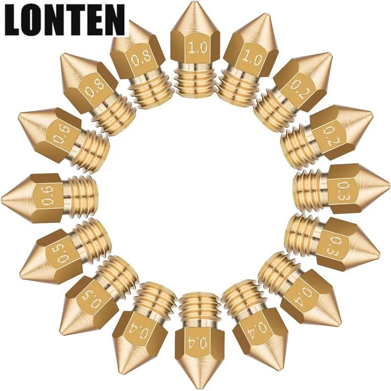 Custom Lonten 3D Printers Parts MK7 MK8 Nozzle 0.4mm 0.3mm 0.2mm 0.5mm Copper Extruder Threaded 1.75mm 3.0mm Filament Head Brass Nozzle Manufacturer