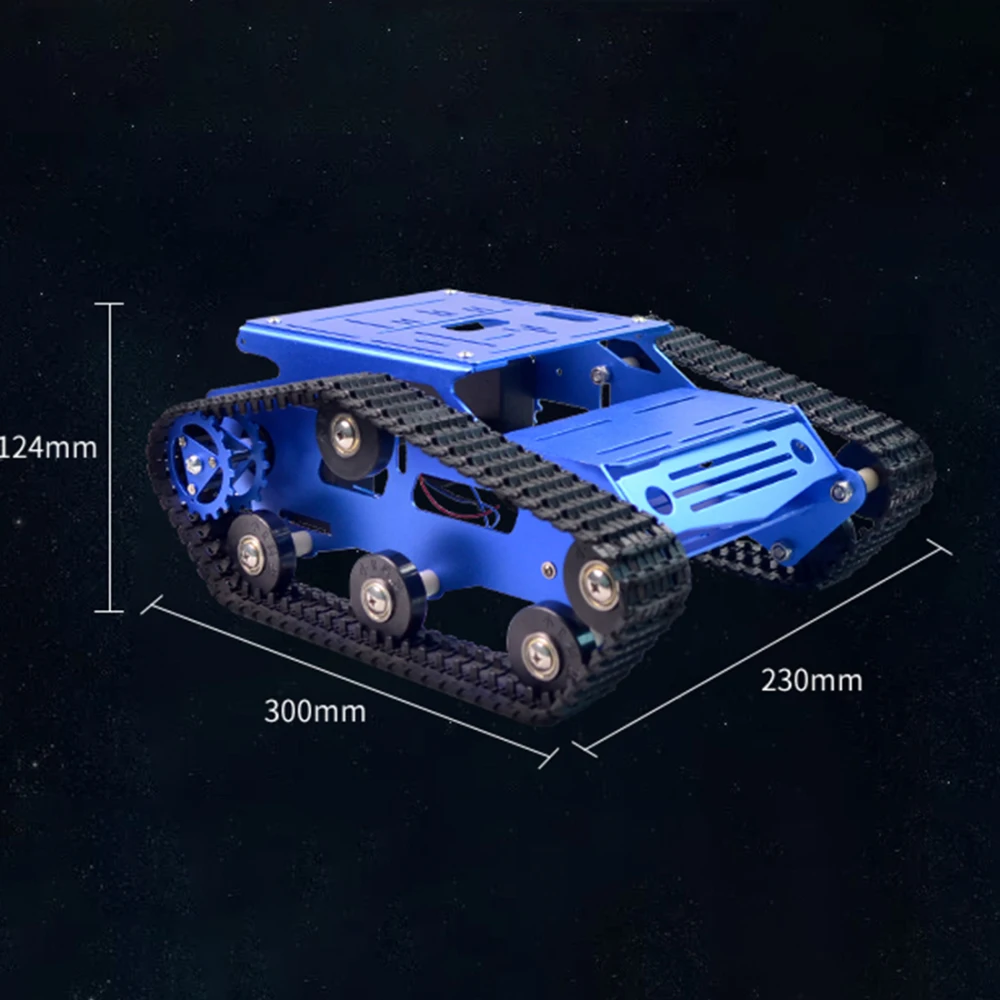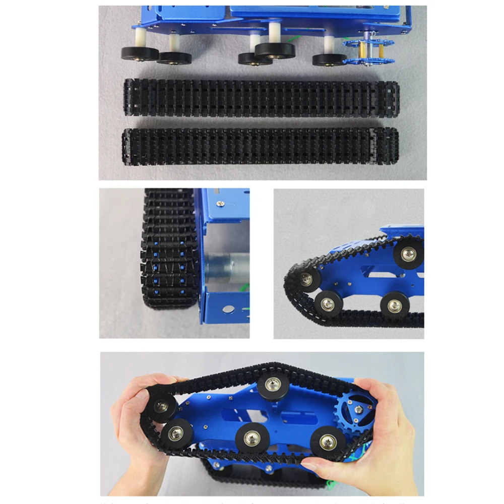 .High Quality: Large tank crawler car frame with chassis. Aluminum alloy material, model stamping manufacturing. The surface has been electroplated and has a high quality. The bearing wheel and track are made of engineering plastics, which are rugged and durable.