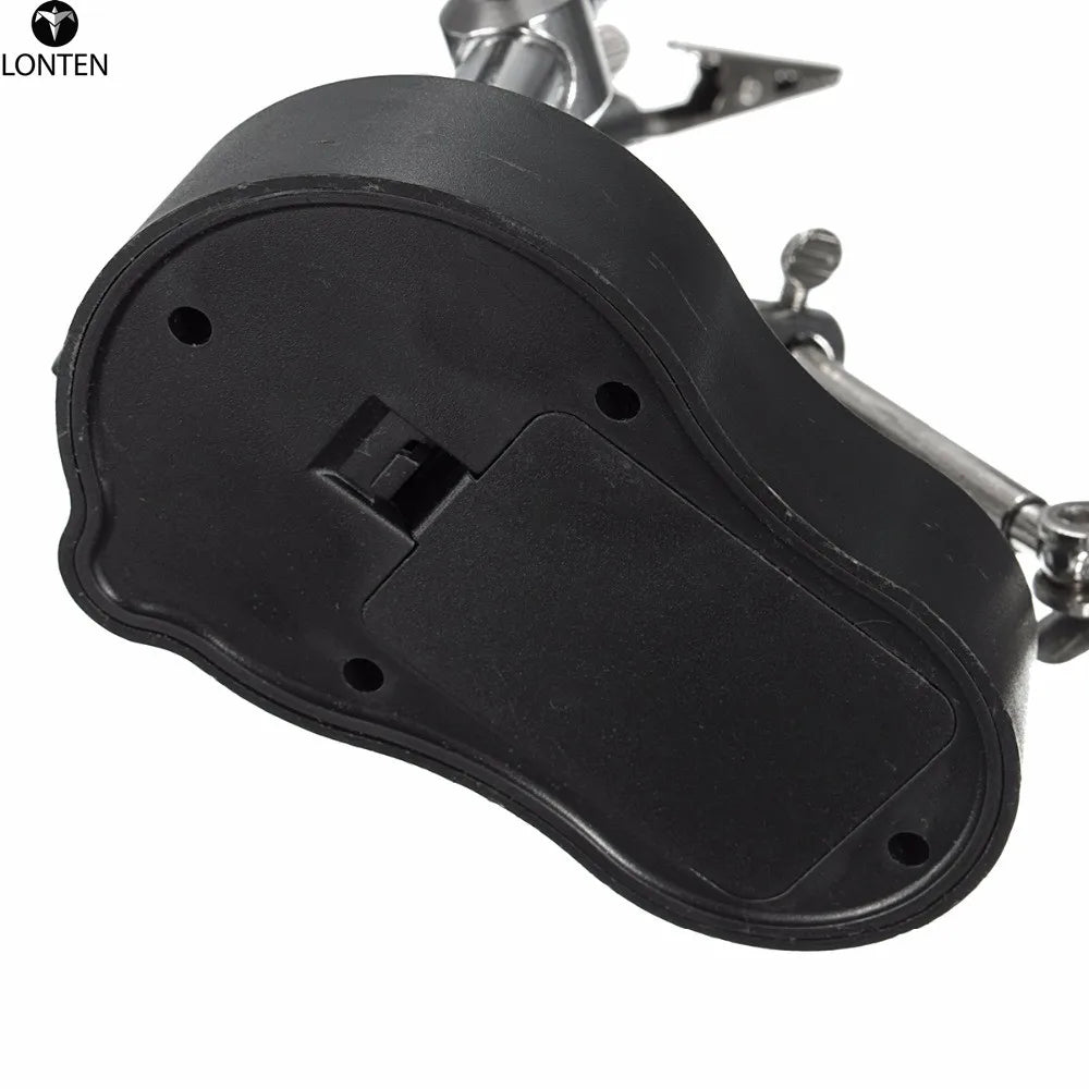 With movable arms and adjustable crocodile holding clips allowing for hands use.