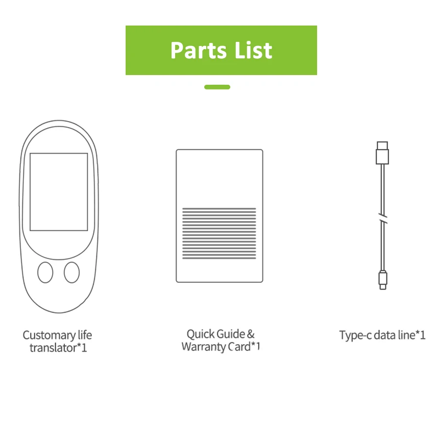difference due to different manual measurement. Package include: 1 * Translator 1 * USB Charging Cable 1 * User Manual. 1 * Bag.