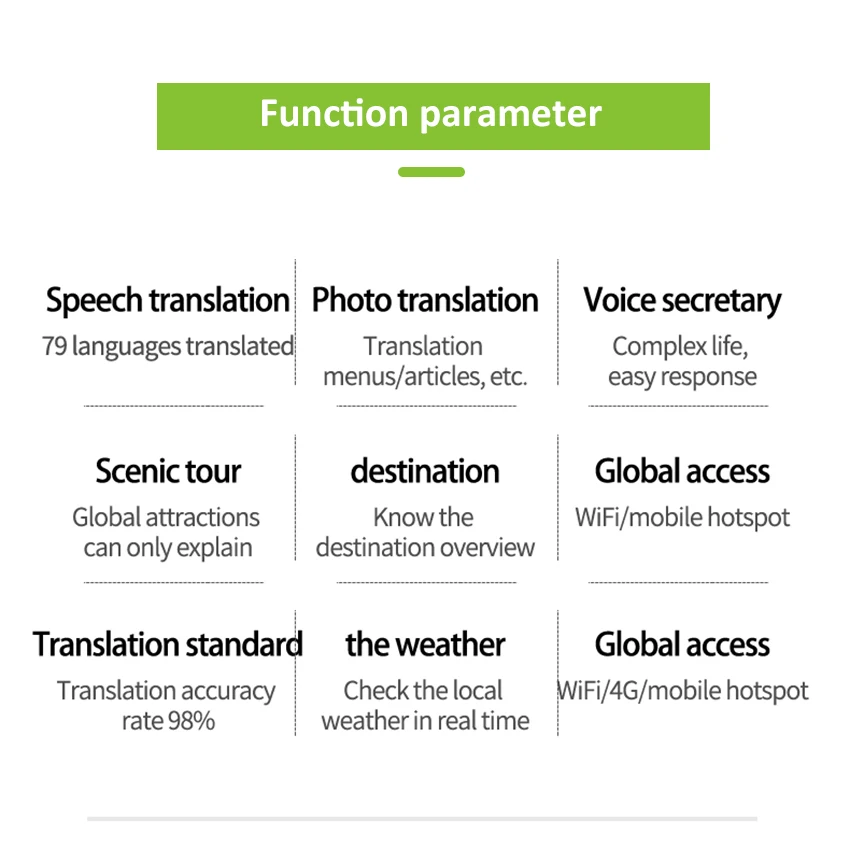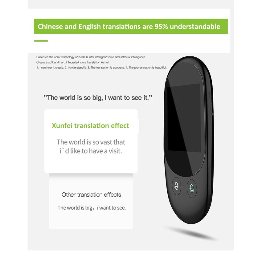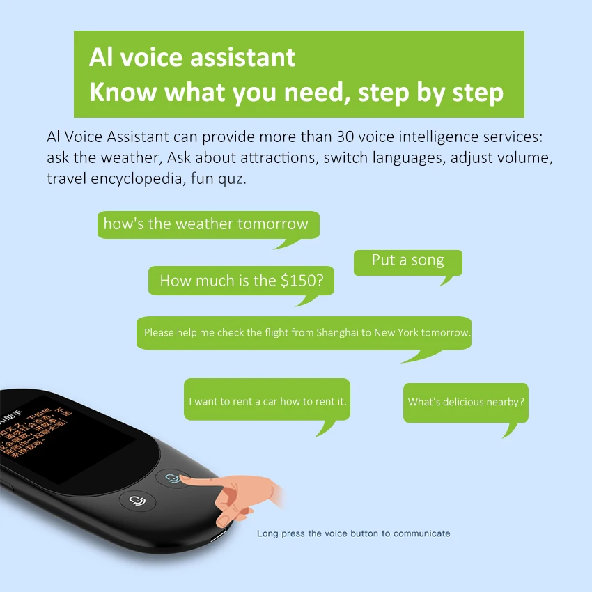 barriers: Suitable for travel, business abroad, tourism. language learning, and so on. Intelligent Voice Translator: AI