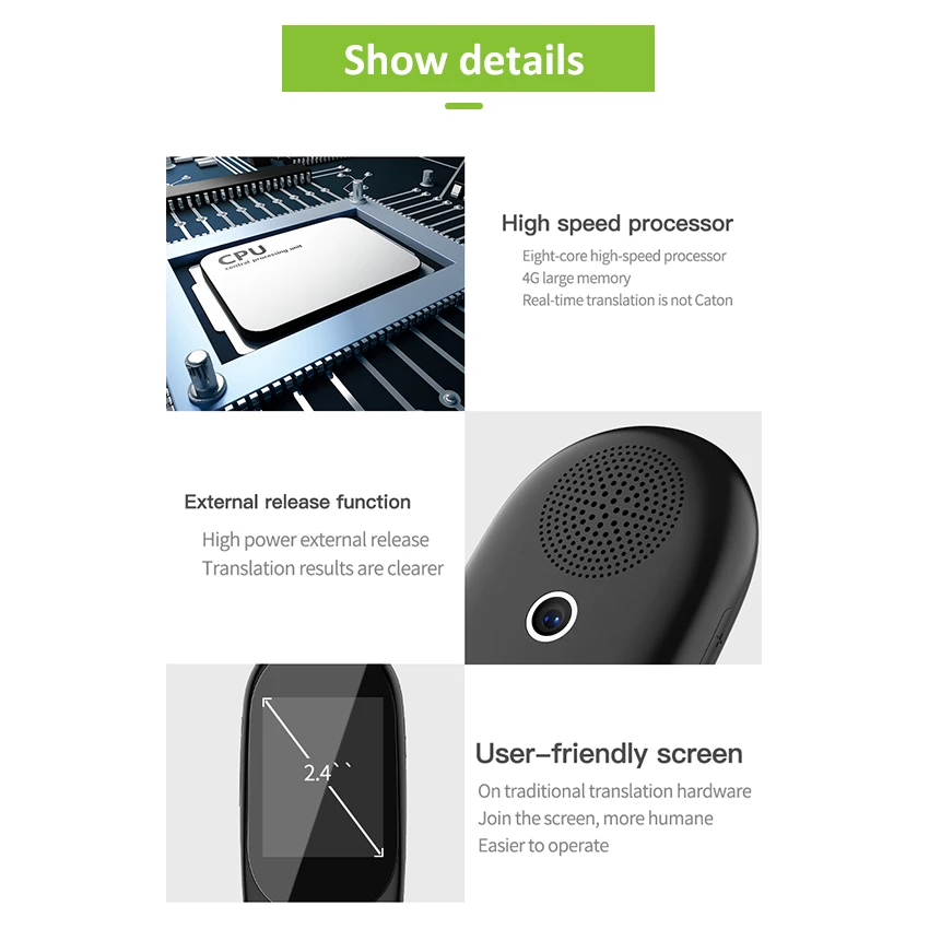 Greek, Hungarian, Romanian, Hebrew, Malay ... 2.4-inch display, translation result HD display touch screen selection, instant view