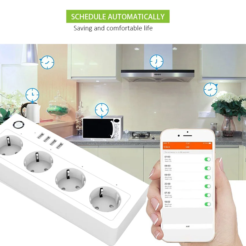 can be achieved by clicking the button on the socket. -Timing function: Mobile APP with timing control switch function. -Online