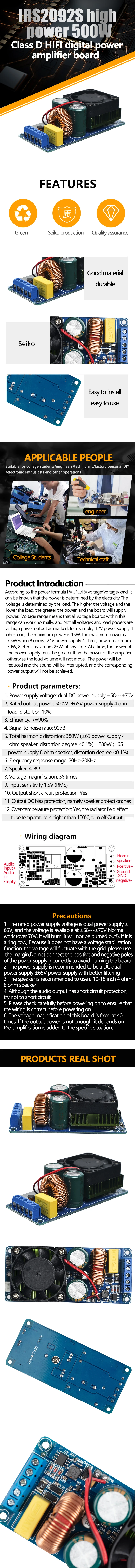 Custom LT-HIFI Power IRS2092 500W Mono channel Digital power amplifier board Class D Stage power amplifier board Manufacturer