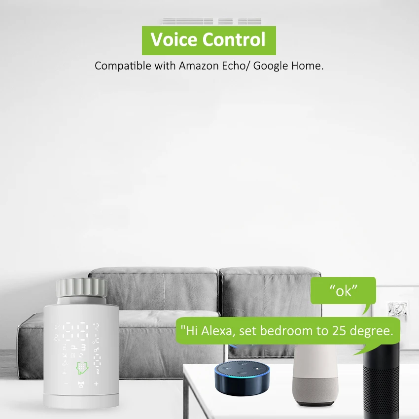 hands-free voice control via Alexa and Google Assistant after successfully connecting your valve to Tuya /Smart Life App on the